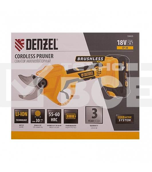 Секатор аккумуляторный Denzel CP-30, 18В Li-IonАртикул: 10535430